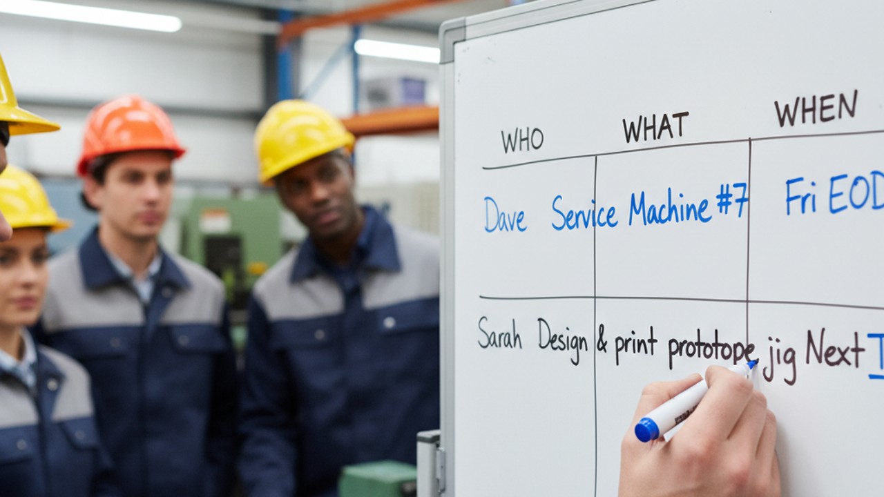 Everyone shuffles out. Some head back to the shop floor, others to their desks. But a nagging feeling hangs in the air. Did we actually decide to do anything about that alignment issue? Who is responsible for booking that service, and when are they going to do it? More often than not, everyone leaves with a slightly different version of the meeting’s outcome in their head. The result is that the same problems reappear in tomorrow’s meeting, and the one after that. It’s a cycle of talk without traction, and frankly, it’s a colossal waste of time and energy.