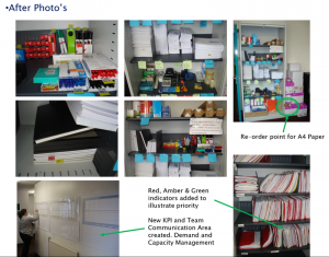 Working with the operational teams within a pilot area, they were introduced to Lean Office and 5S training/workshops. The main agenda covered the following tools and techniques: