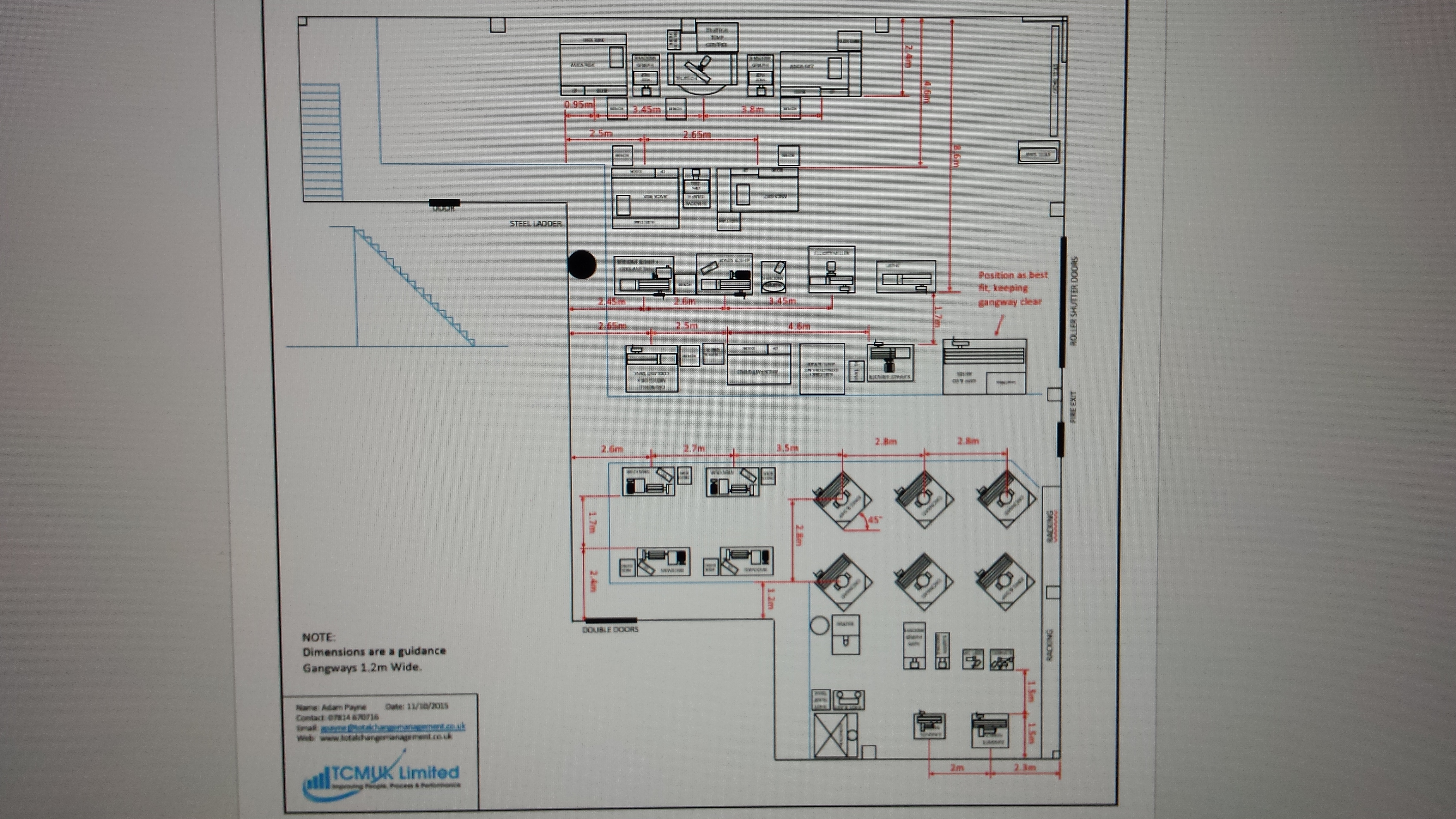 Located at Westwood Business Park, building is too small to house all machinery safely, the business is expanding and new machinery is required to keep the competitive advantage. Observations, potential H&S issues, machines set into functional areas, no visual management and general maintenance is an issue due to limited space to work.